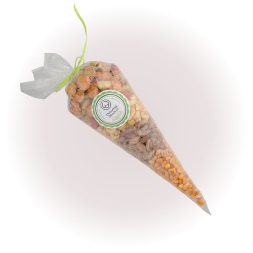 Potěšte své blízké dárkovým kornoutem Z UDÍRNY. Tento originální mix obsahuje uzené mandle, kešu z udírny, japonské perly a kukuřici s příchutí barbecue – perfektní kombinace chutí pro každého gurmána!