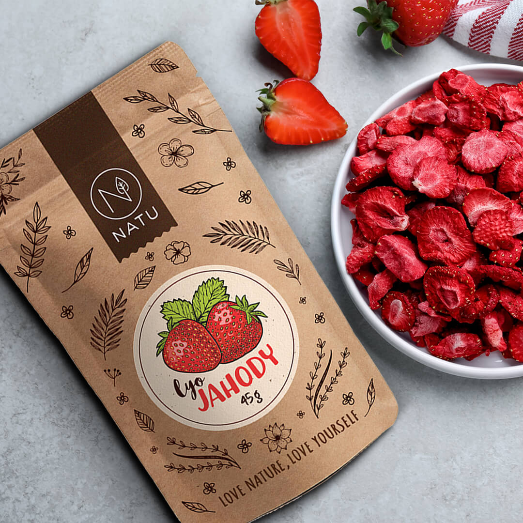 Díky šetrnému sušení mrazem si uchovávají živiny, barvu, aroma i přirozenou sladkost čerstvých jahod. Navíc krásně křupou a voní jako právě utržené. Objevte i vy kouzlo lyofilizovaných jahod a přisypte si je do müsli, granoly nebo jogurtu. Oceníte je i jako zdravou svačinku, která nikdy neomrzí.