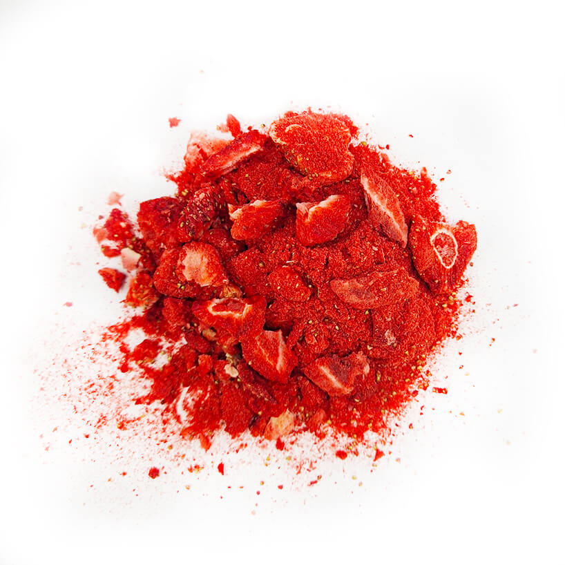 Lyofilizovaný jahodový prach s kousky jahod je nepostradatelnou ingrediencí pro všechny, kdo rádi kouzlí v kuchyni. Má sytě červenou barvu, intenzivně voní po zralých jahodách a jeho svěží ovocná chuť rozzáří každý recept.Díky šetrnému sušení mrazem si jahody uchovávají většinu svých přirozených vlastností – od barvy přes chuť až po cenné živiny. To vše se promítá i do výsledného prášku, který funguje jako čistě přírodní ochucovadlo i barvivo, propůjčující pokrmům červený odstín.Jahodový prášek doladí každý pokrm k dokonalosti – a to chuťově i vizuálně. Přimíchejte pár lžiček do ranní kaše, smoothie nebo jogurtu a proměnte jídlo v svěží ovocnou bombu. Využijete ho i při zdobení dortů, cupcakes, lívanců či při výrobě domácích čokolád a granol. Díky obsaženým zrníčkům a kouskům jahod dodá směsi i jemnou strukturu a autentický vzhled. Protože se jedná o 100% lyofilizované jahody, nepřidáváte do jídla žádná umělá barviva ani cukr – jen čistou přírodu.TIP: Smíchejte s mascarpone nebo tvarohem a vytvořte rychlý ovocný krém bez kapky umělých přísad.