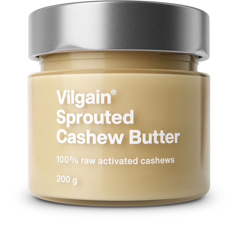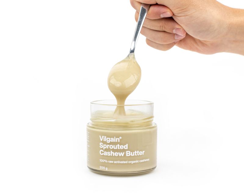 Vilgain Kešu máslo z aktivovaných ořechů BIO je ultra jemné ručně zpracované máslo 100% z aktivovaných nepražených kešu oříšků.