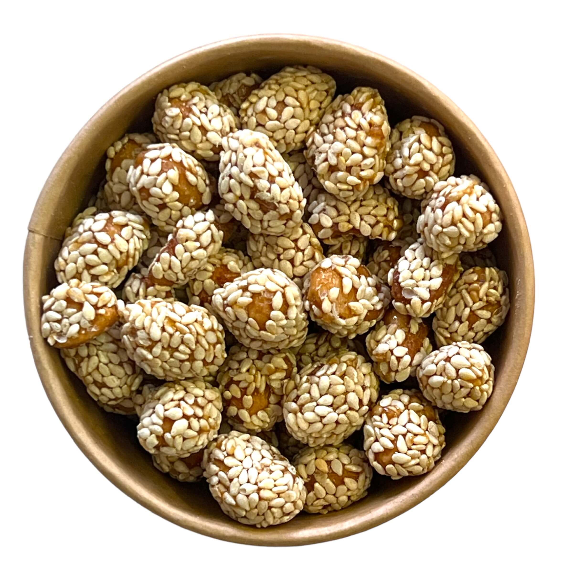 Křupavá kombinace arašídů a sezamu s příjemně slaným nádechem.