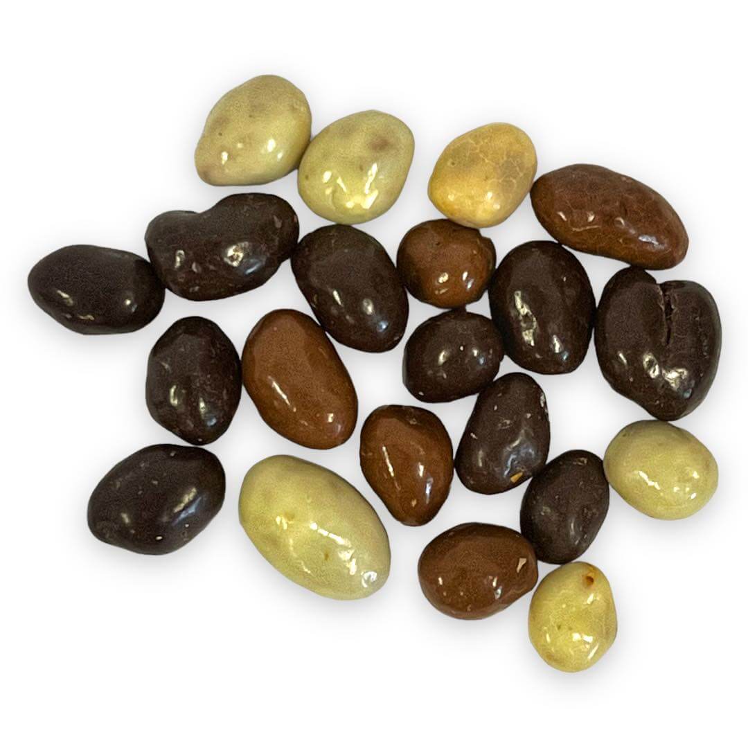Nasekané arašídy zalité do kvalitní čokolády ve variantách bílá, mléčná, hořká či slaný karamel.
