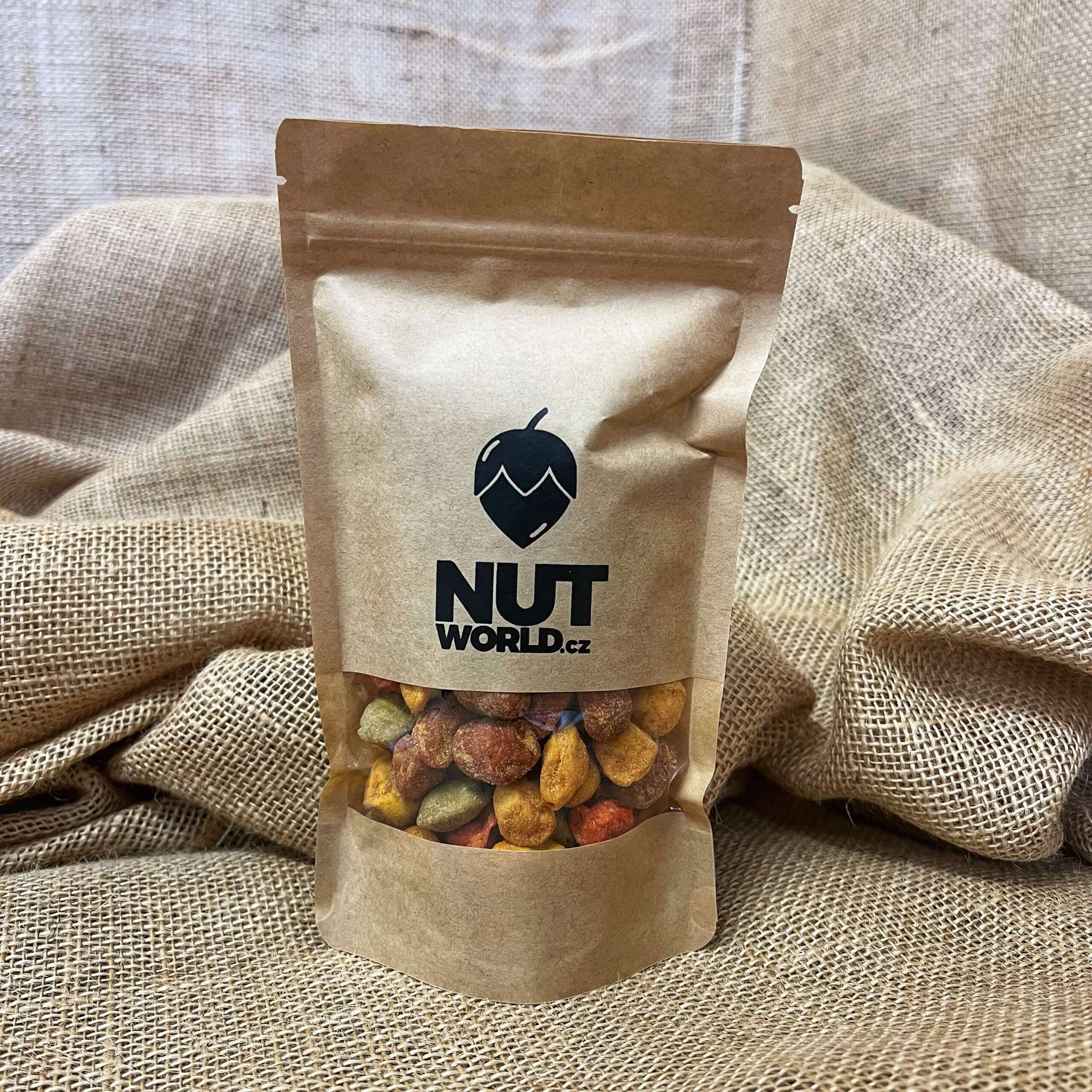 Co byste měli vědět:Druh:Skořápkové plodySložení:ARAŠÍDY 29,37%, PŠENIČNÁ mouka, kukuřičný škrob, cukr, kukuřičná mouka, palmový olej, sečuánské koření (cukr, dextrin, sůl, práškový čínský pepř, prášková červená chilli paprička, kvasnice, hydrolyzovaný rostlinný…