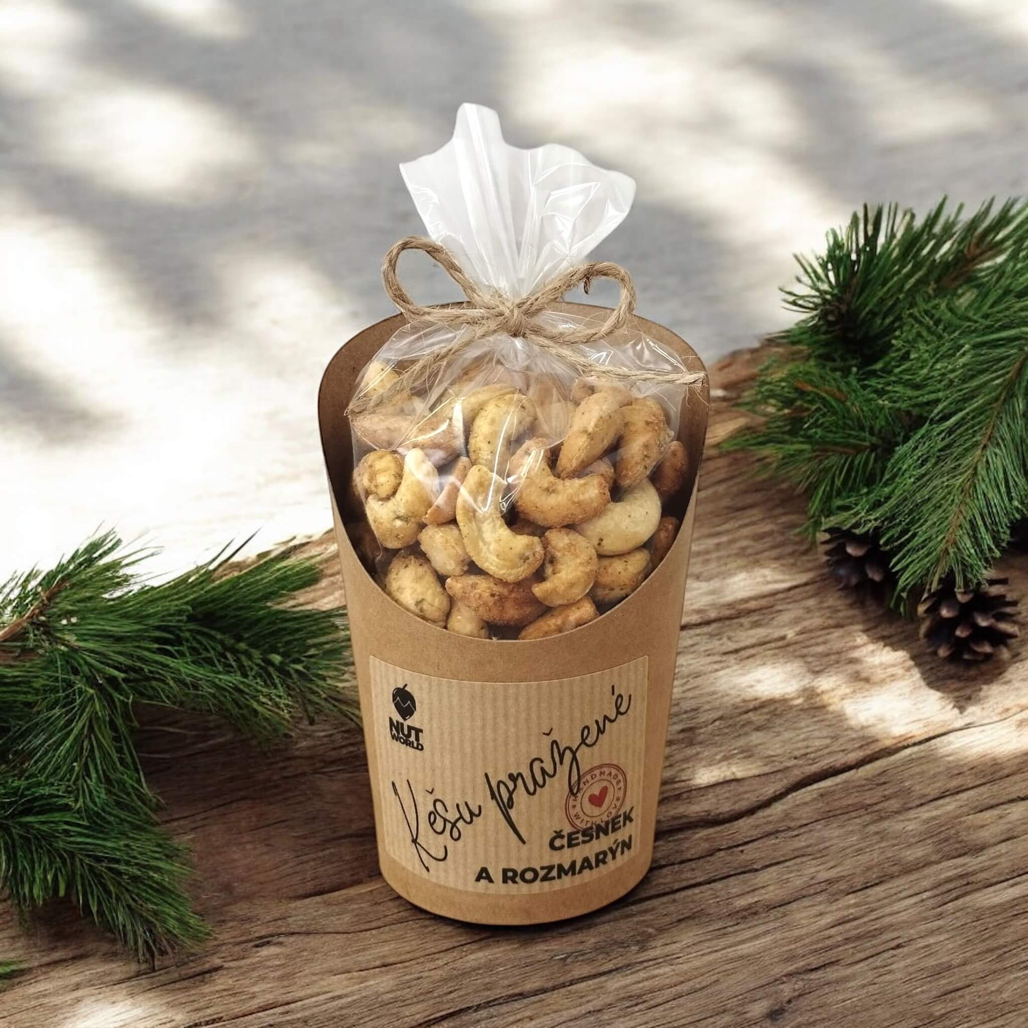 Kešu ořechy s česnekem a rozmarýnem v celofánku a kelímku 180g