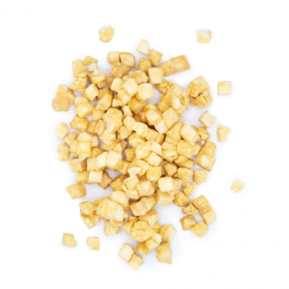 Čerstvá jablka jsme zbavili slupky a jádřinců, nakrájeli na drobné kostičky a šetrně usušili metodou lyofilizace. Díky tomu si ovoce zachovává své nutriční vlastnosti jako jsou živiny, vitamíny a minerály. Lyo jablka se pyšní vysokým obsahem vlákniny a skvěle se hodí do kaší, granol nebo jen tak na zobání. Už nemusíte zdlouhavě sušit jablka v sušičce nebo na novinách u topení. Vychutnejte si křupavé jablečné kousky kdykoliv budete mít na ně chuť.