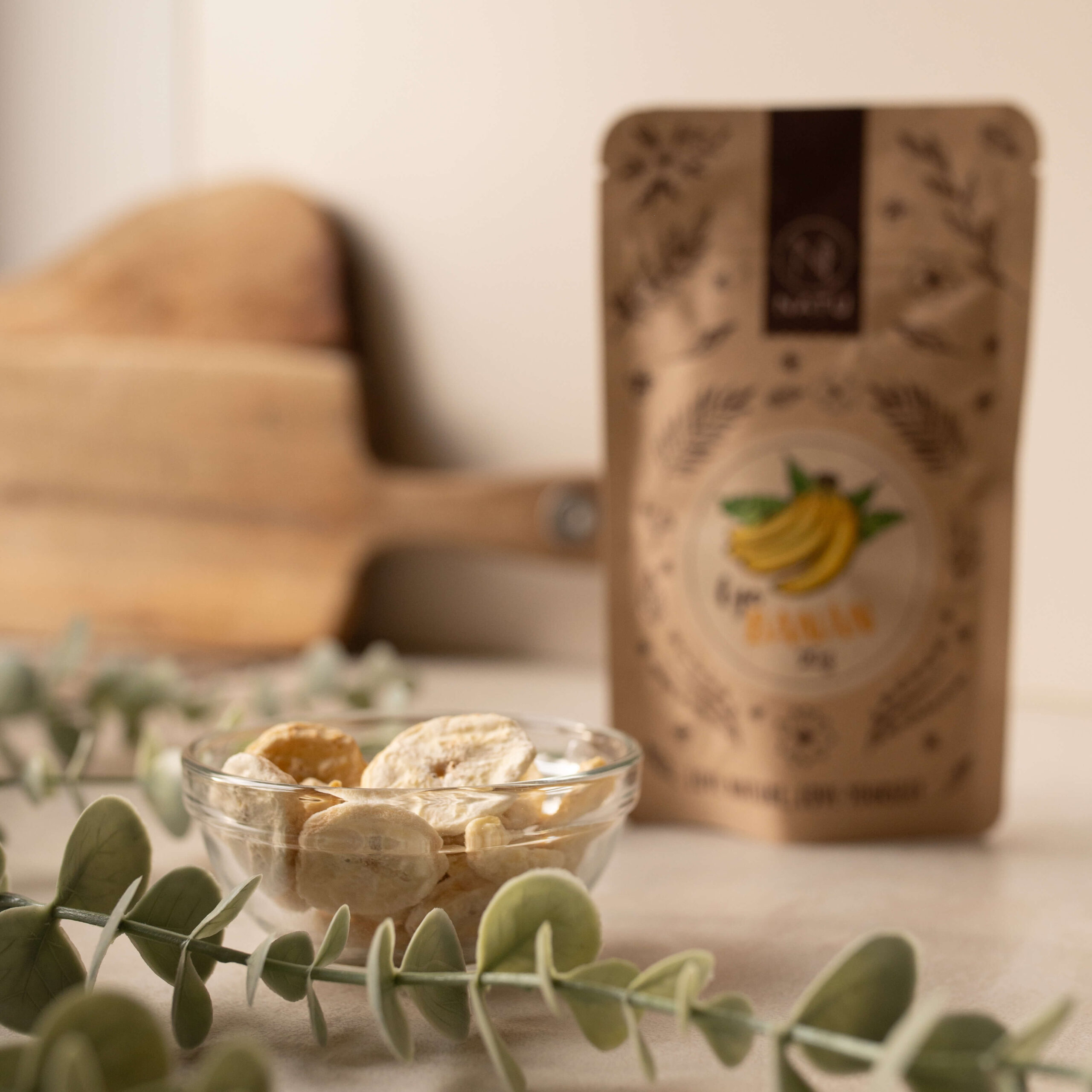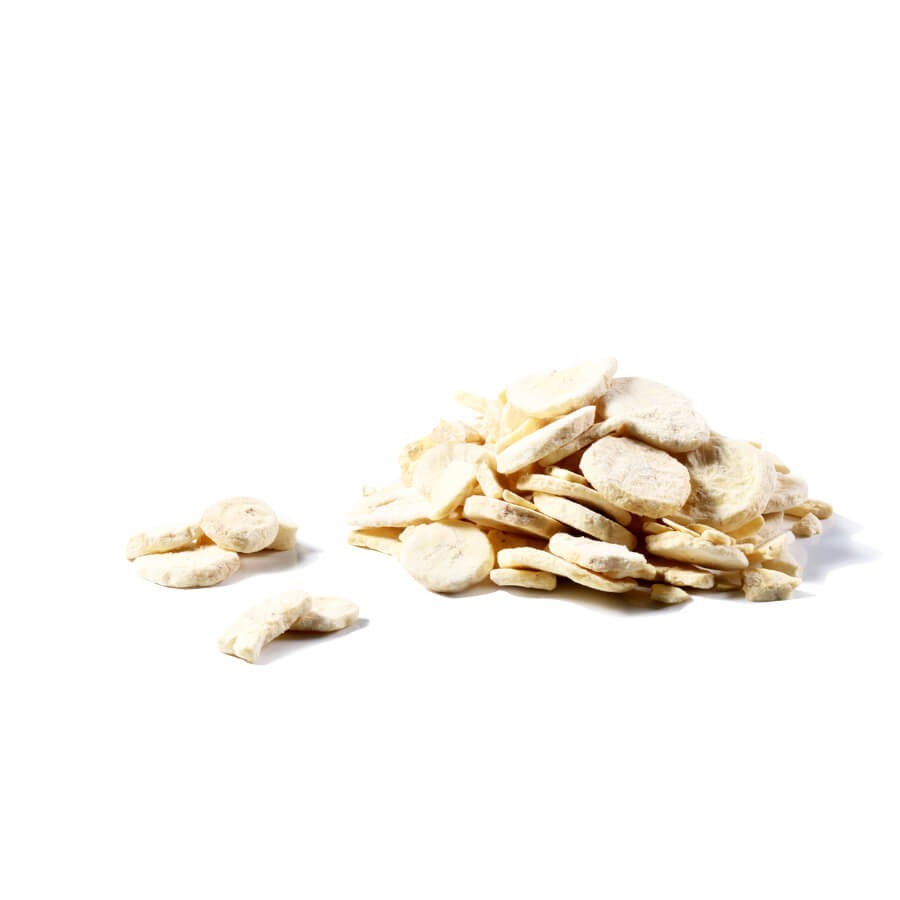 Lyofilizace je odborný název pro sušení potravin mrazem, díky čemuž se zachová výrazně větší množství živin než při klasickém sušení horkým vzduchem. Banány jsou chudé na tuky a bílkoviny, ale za to mají hojné množství ovocných cukrů.
