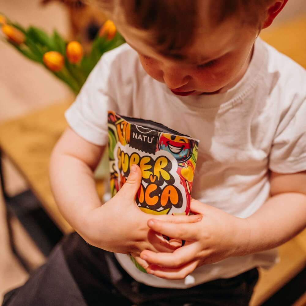 100% přírodní složení, bez zbytečností a bez přidaného cukru. Jen ovoce v té nejlepší podobě – přesně tak, jak to mají děti rády.