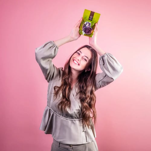 Drobný kopeček s velkou chutí! Jemné kešu obalené v křupavé borůvkové krustě vypadají jako miniaturní zmrzlina, která se ale nerozteče. Slibujeme vám, že ovocná svěžest borůvek a máslová chuť kešu tvoří opravdu dokonalou dvojku. Bez přidaného cukru, plný chuti – prostě svačinka, která potěší všechny vaše smysly!